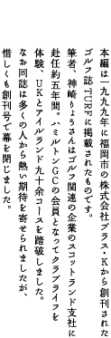 (五)百、百五十のヤーデージは必要ない (四)年間をとおしてマッチプレーを楽しむ (三)半年は毎日のように競技会 (二)メンバーになる日まで辛抱強く待つ (一)村に村の名前のゴルフ倶楽部がある あなたはどこでゴルフをしますか?